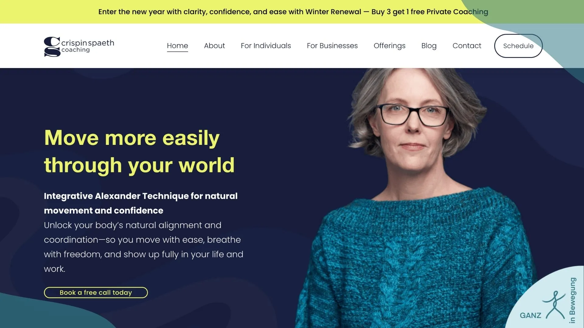GanzinBewegung serves holistic thinking people who want to improve their mind body connection.